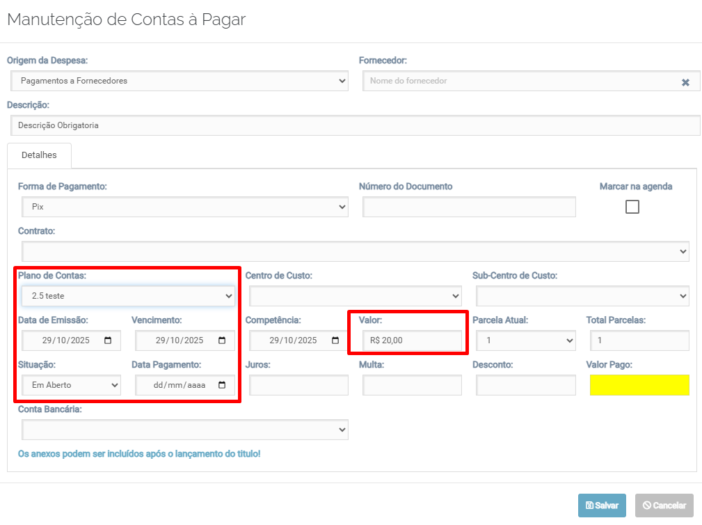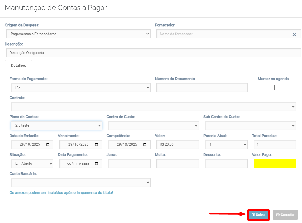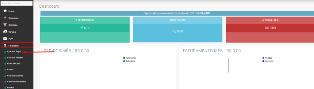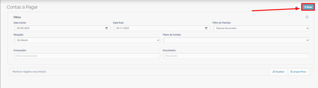 No menu lateral, clique em Financeiro → Contas a Pagar.