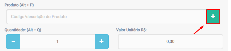 No campo Produto (Alt+P), pesquise/seleciona o item e clique no botão “+” para inserir