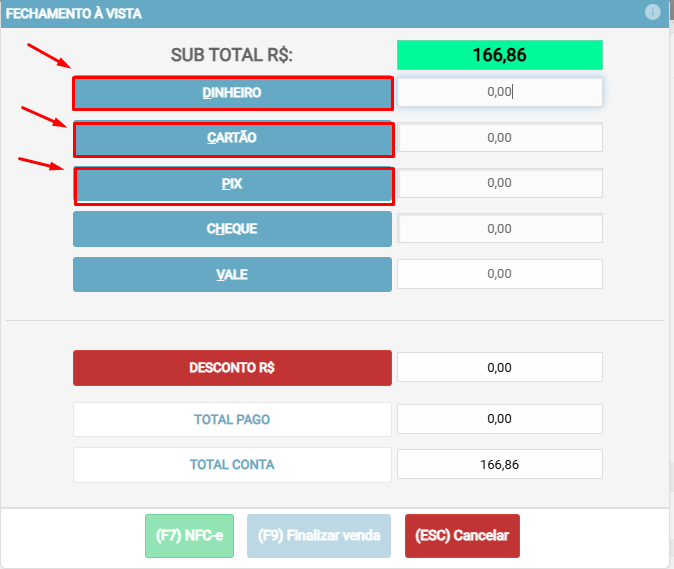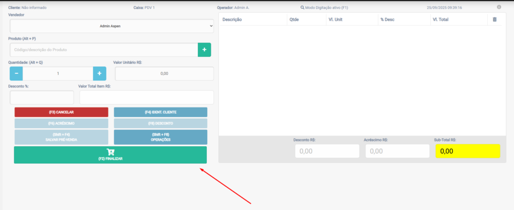 Clique em (F2) Finalizar para ir ao fechamento.