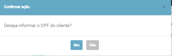 O sistema perguntará se deseja informar o CPF do cliente. Clique em Sim ou Não de acordo com a sua necessidade.